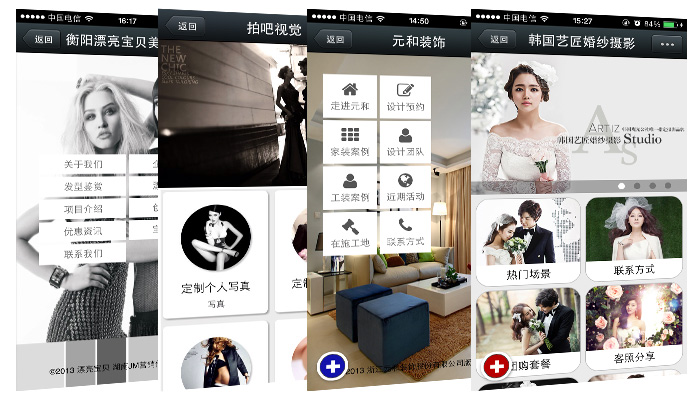 微盟全國(guó)首創(chuàng)微信3G網(wǎng)站,用戶(hù)只要通過(guò)簡(jiǎn)單的設(shè)置,就能快速生成屬于您自己的微信3G網(wǎng)站,并且有各種精美模板,可供選擇,還有自定義模版,可以設(shè)計(jì)出自己的風(fēng)格,讓您的粉絲有種驚艷的感覺(jué)。在微盟官方微信號(hào)輸入"首頁(yè)"體驗(yàn)微信3G網(wǎng)站。