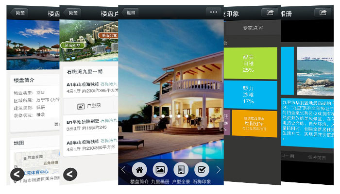 微房產(chǎn)是利用微盟平臺(tái)打造的一款全新超炫酷的房產(chǎn)官方網(wǎng)站,其功能非常強(qiáng)大,包含了樓盤(pán)介紹、子樓盤(pán)管理、戶(hù)型介紹及戶(hù)型圖、樓盤(pán)相冊(cè)、房友印象以及專(zhuān)家點(diǎn)評(píng)等功能,更有360度全景看房超強(qiáng)大功能震撼登場(chǎng)!花幾分鐘時(shí)間即可打造微房產(chǎn)官網(wǎng)。