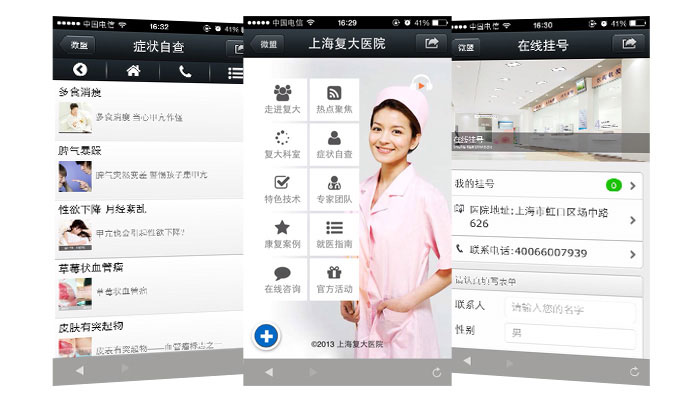 用戶(hù)可通過(guò)微盟平臺(tái)實(shí)現(xiàn)在線(xiàn)掛號(hào)、內(nèi)容設(shè)置、預(yù)約查詢(xún)、預(yù)約統(tǒng)計(jì)的一整套服務(wù)體系,能夠有效解決患者掛號(hào)難、排隊(duì)累、就醫(yī)不方便等一系列難題
