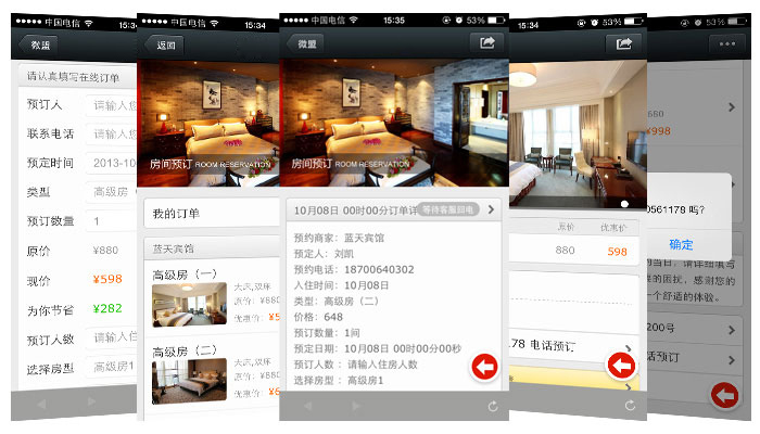 5、提供服務(wù):用戶(hù)直接可在公眾賬號(hào)進(jìn)行預(yù)約房間、預(yù)約餐廳等操作。