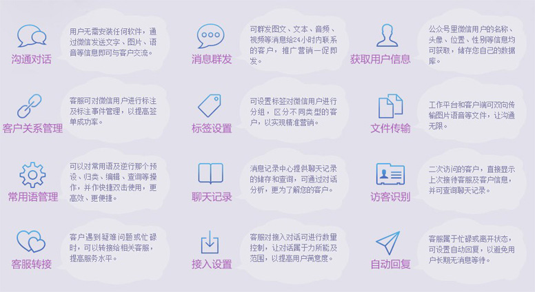 隨著互聯(lián)網(wǎng)的發(fā)展及網(wǎng)絡(luò)營(yíng)銷(xiāo)模式重要性的凸顯,在線(xiàn)客服系統(tǒng) 會(huì)成為網(wǎng)絡(luò)營(yíng)銷(xiāo)的重要工具,也是提示企業(yè)形象、加強(qiáng)企業(yè)與訪(fǎng) 客互動(dòng)的必備工具;如今,微信迅速崛起,商家都把店鋪搬進(jìn)了 公眾賬號(hào),而微盟微客服系統(tǒng),就是一款為微信商家打造的實(shí)時(shí) 溝通軟件,讓商家可以分享微信6億用戶(hù),創(chuàng)造無(wú)限商機(jī)。