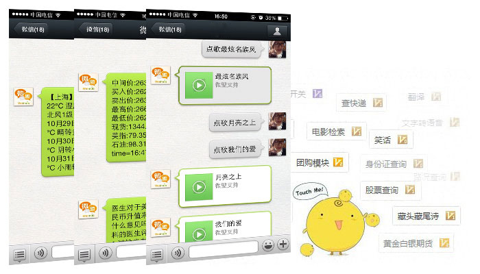 有小黃雞陪聊加強(qiáng)版510萬(wàn)數(shù)據(jù),過(guò)濾了廣告和一些敏感詞匯。 還有天氣查詢(xún) ,手機(jī)查詢(xún),郵編查詢(xún),快遞查詢(xún)(支持160家快遞公司),身份證查詢(xún),人品計(jì)算,翻譯,字典,百科(全網(wǎng)數(shù)據(jù)),音樂(lè)80.1萬(wàn) ,笑話(huà)5萬(wàn)條,小黃雞陪聊510萬(wàn)條,詩(shī)詞23萬(wàn)首,詩(shī)句 225萬(wàn),成語(yǔ)5萬(wàn),謎語(yǔ)5萬(wàn),解夢(mèng)3萬(wàn),糗事55萬(wàn),公交線(xiàn)路4萬(wàn),火車(chē)線(xiàn)路4500,機(jī)器人學(xué)習(xí)功能等等......