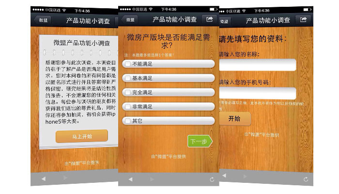 我們將利用微信的強(qiáng)交互性,讓您通過(guò)對(duì)互動(dòng)流程、環(huán)節(jié)和方式的設(shè)計(jì),運(yùn)用各種設(shè)計(jì)活動(dòng)從而實(shí)現(xiàn)與用戶(hù)的互動(dòng)交流,,微整合系統(tǒng)互動(dòng)符合微信娛樂(lè)性強(qiáng)的產(chǎn)品本質(zhì),微盟內(nèi)置了專(zhuān)為商家定制的“商家營(yíng)銷(xiāo)服務(wù)模塊”,包括優(yōu)惠券推廣模塊、幸運(yùn)大轉(zhuǎn)盤(pán)推廣模塊、刮刮卡抽獎(jiǎng)模塊、微投票、一戰(zhàn)到底等功能模塊,商家通過(guò)發(fā)起營(yíng)銷(xiāo)活動(dòng),對(duì)已有客戶(hù)進(jìn)行再營(yíng)銷(xiāo),通過(guò)不斷更新補(bǔ)充主題,用戶(hù)可以反復(fù)參與,并可帶動(dòng)周邊朋友一起分享,從而形成極強(qiáng)的口碑營(yíng)銷(xiāo)效果。